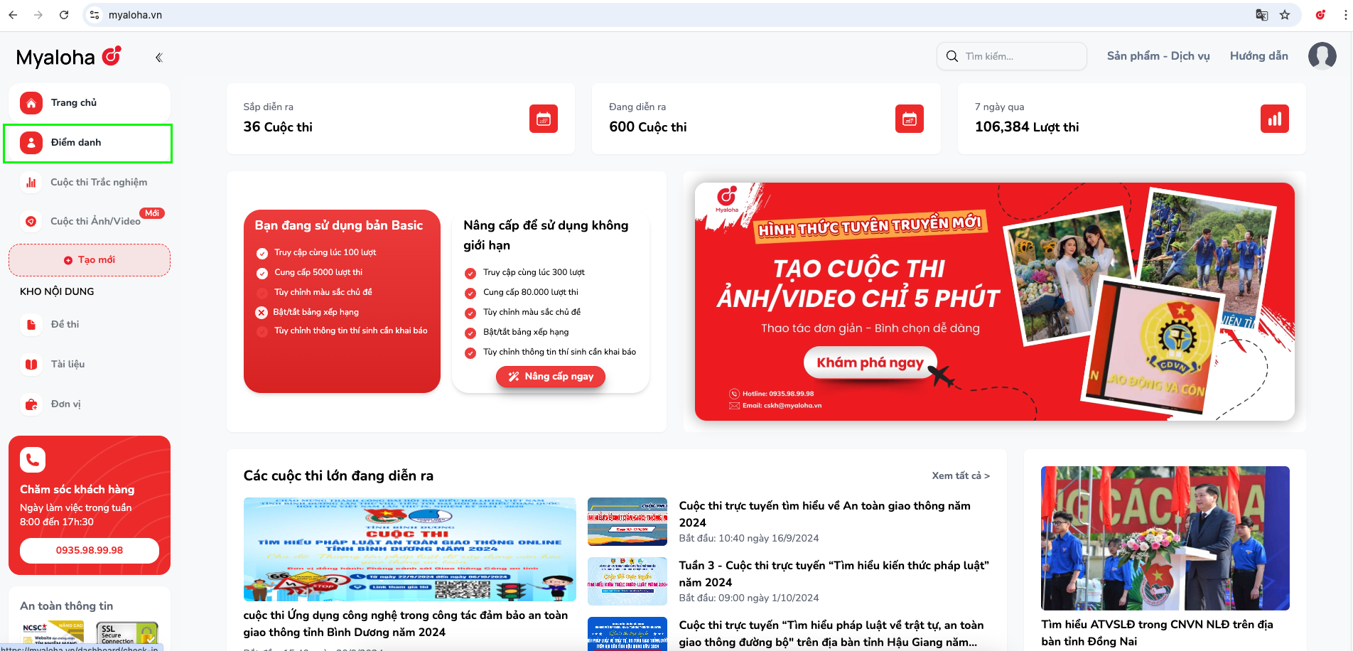 ### Bước 2. Sau khi đã truy cập Trang quản trị, chọn tính năng “Điểm danh"