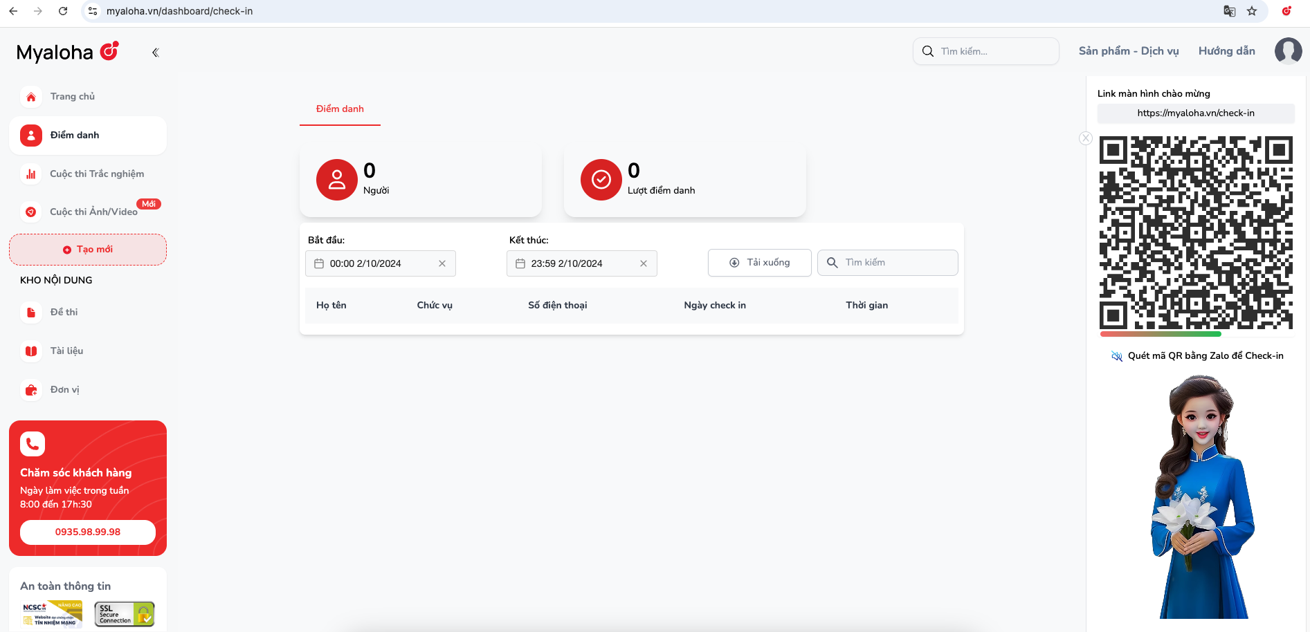 * Sử dụng mã QR để người tham gia có thể quét mã bằng zalo hoặc camera của điện thoại
